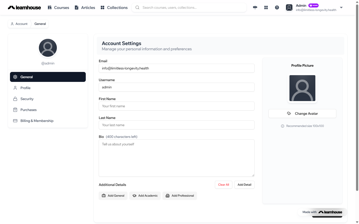 Once logged in, add your name, a professional photo, and a short bio. This helps your team recognize you and appears alongside your published content.