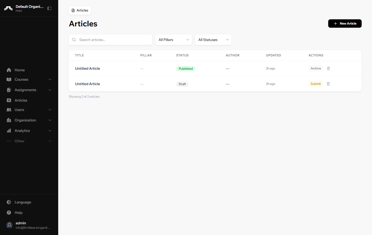 From your Dashboard, click Articles in the left sidebar. You'll see a list of all articles you have access to.